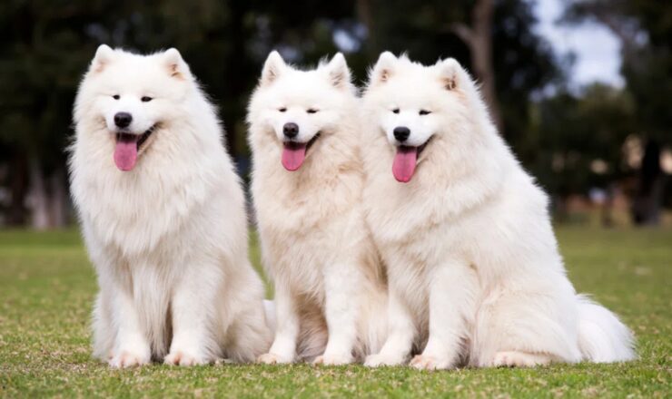 真っ白でふわふわの被毛が特徴的なサモエドは、その美しさを保つために頻繁なブラッシングとトリミングが必要です。購入価格は50〜80万円と高額で、希少性から100万円を超えることもあります。
