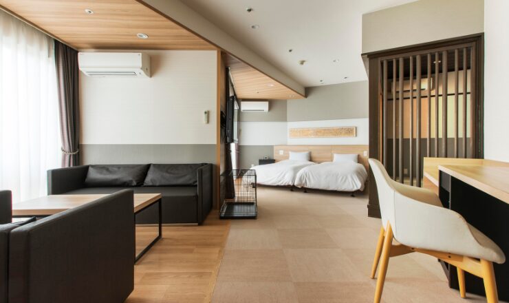 スタンダードツイン(28㎡)の客室から、デラックストリプル(56㎡)の客室まで、全ての客室にわんちゃんと一緒にご宿泊いただけます。