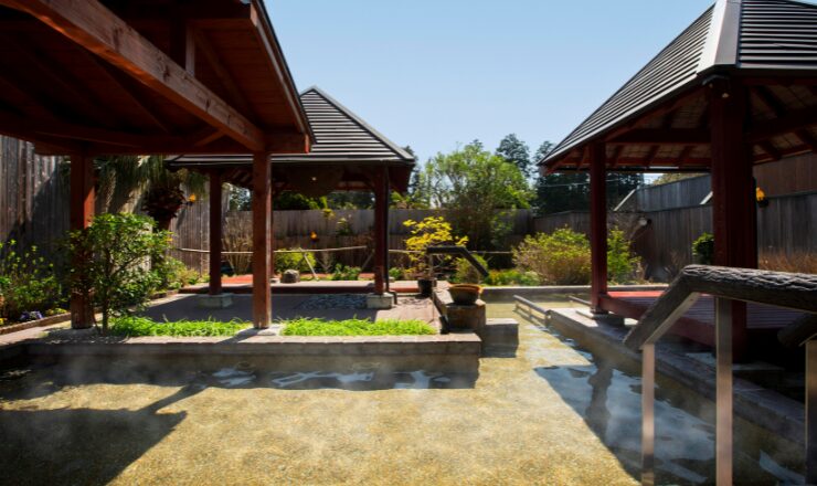 離れの大露天風呂は開放感があり、晴れた日には星空を見上げながら温泉でリラックスすることができます。