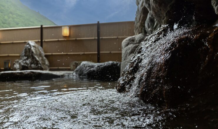 情緒あふれる石造りの露天風呂からは夜になると星空も。大自然に包まれながら、日ごろの疲れを温泉で癒していただけます。