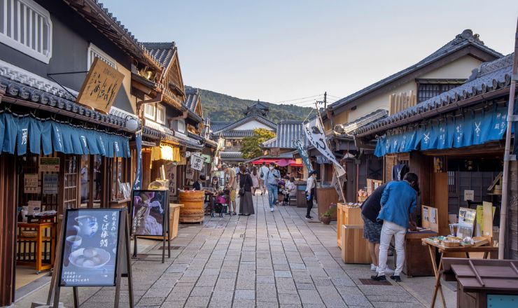 おかげ横丁は、江戸〜明治期の街並みを再現した風情ある観光スポットで、食べ歩きや名物グルメを楽しみながら散策できる人気エリア。犬グッズも豊富です。